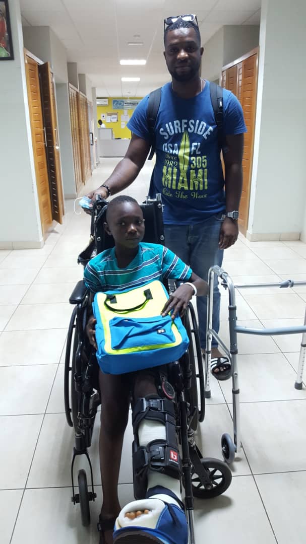 Wir sind erlechtert und dankbar berichten zu können, dass Evans erfolgreich in der Focus Clinic in Accra operiert worden ist. Schon nach einer Woche konnte er das Krankenhaus verlassen und wohnt nun für einige Zeit bei Jacob. Von hier aus wird er zur Physiotherapie begleitet und eine postoperative hygienische Betreuung ist gewährleistet. Evans übt fleißig das Gehen mit seinem Gehwagen, die Schiene um sein Bein muss bis Ende Dezember bleiben. Über seine Fortschritte werden wir berichten.