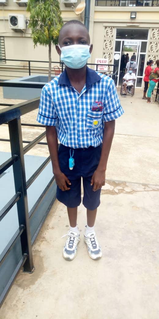 Evans ist jetzt in der Schule und dies ist sein zweites akademisches Semester, seit er im Januar 2022 die Schule wieder aufgenommen hat. Die Schule heißt HUDSON BAY MONTESORRI ACADEMY und befindet sich in Teshie, etwa 7 Minuten Fußweg von Evans Wohnort entfernt. Die unmittelbare Nähe der Schule ist ideal für ihn, damit er seine Beine regelmäßig zur Schule bewegen kann, wie von Dr. Arthur Sackeyfio vom Focos Hospital und Dr. Emmanuel vom Lekma Hospital empfohlen. Das regelmäßige Gehen zur Schule wird seine Muskeln stärken, so dass er wieder schmerzfrei und unabhängig gehen kann und ein Gleichgewicht der Gelassenheit erreicht.