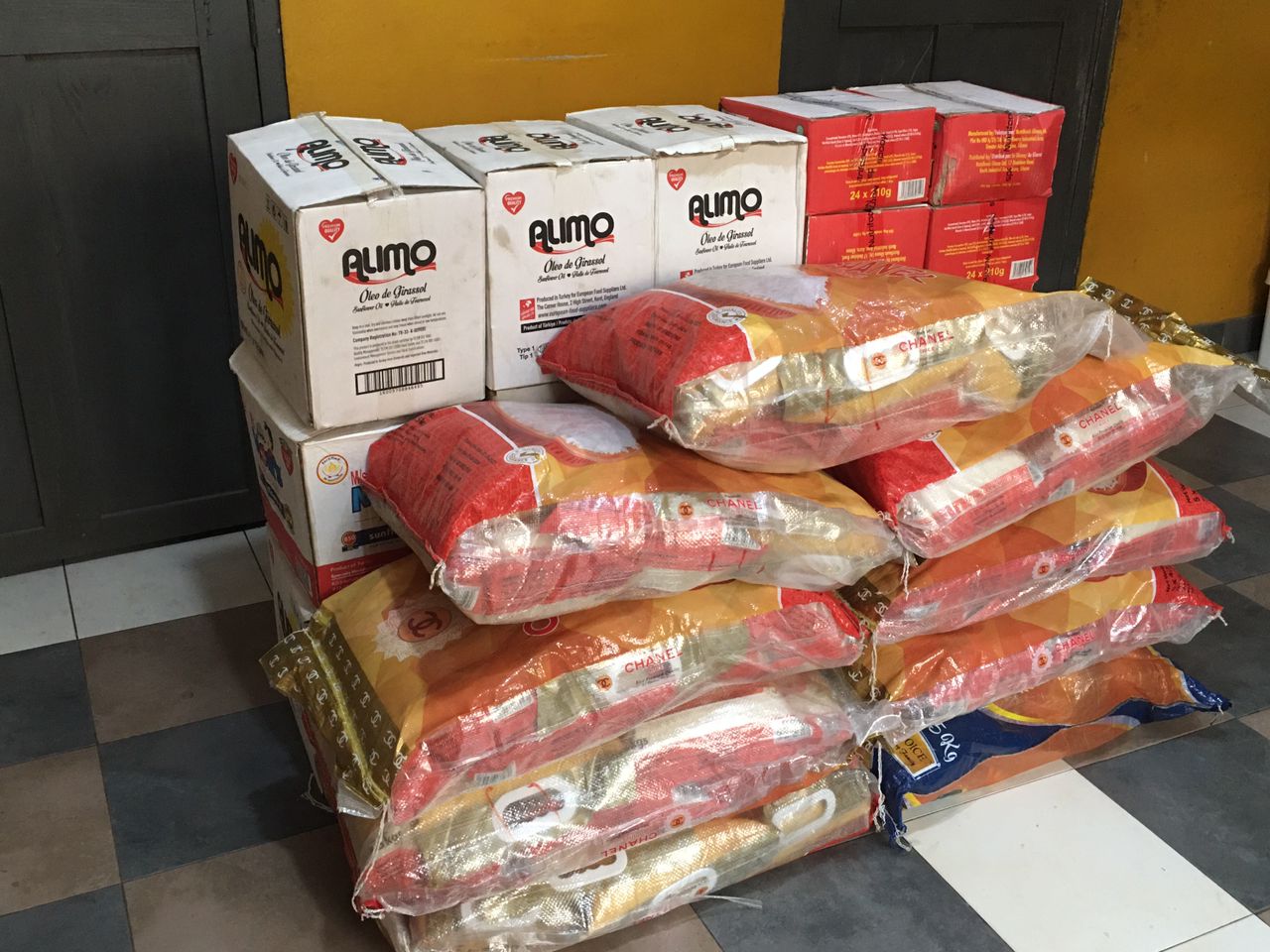 Wir werden deshalb für jedes unserer Kinder und Jugendlichen in Ghana ein Carepaket packen lassen. Es enthält Grundnahrungsmittel wie Reis, Öl, Nudeln usw., und Hygieneartikel im Gesamtwert von 35 €.