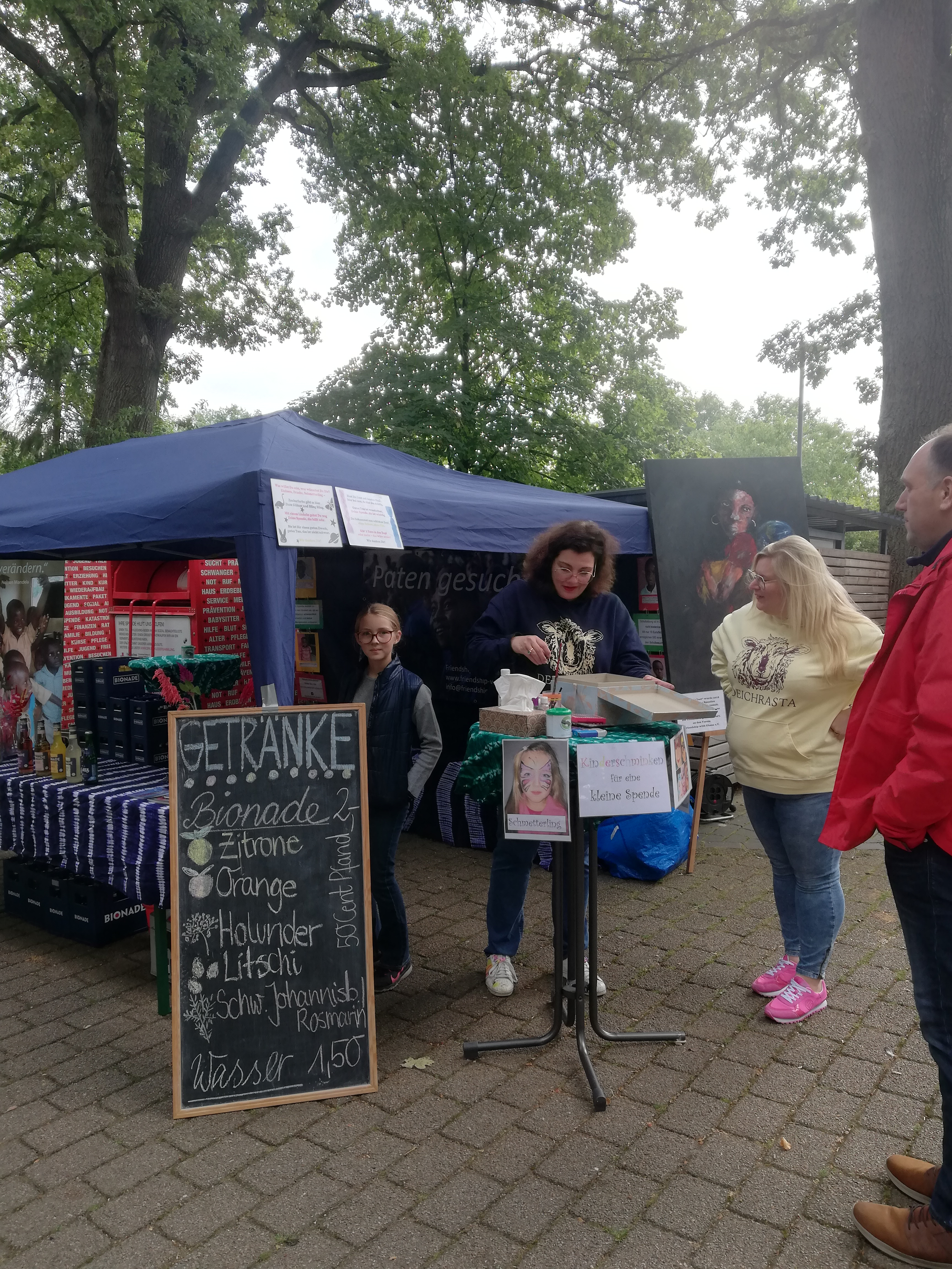 Wir waren dort mit einem Infostand vertreten. Es wurde über unseren Verein informiert, Es wurden kunstvolle Zöpfe geflochten und Kinder als Tiere geschminkt. Hilfe erhielten wir von Christiane, Valentina, Kai und Caroline, sowie Valerie und Olena aus der Ukraine.