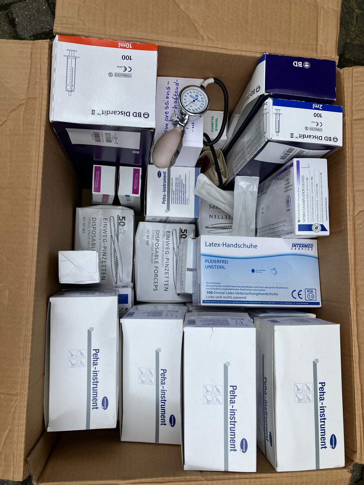 Durch einen Spendenaufruf bei hiesigen Ärzten erhielten wir eine Menge nützlicher Dinge, wie Verbandsmaterial, Stethoskope und vieles mehr. Herzlichen Dank dafür!
