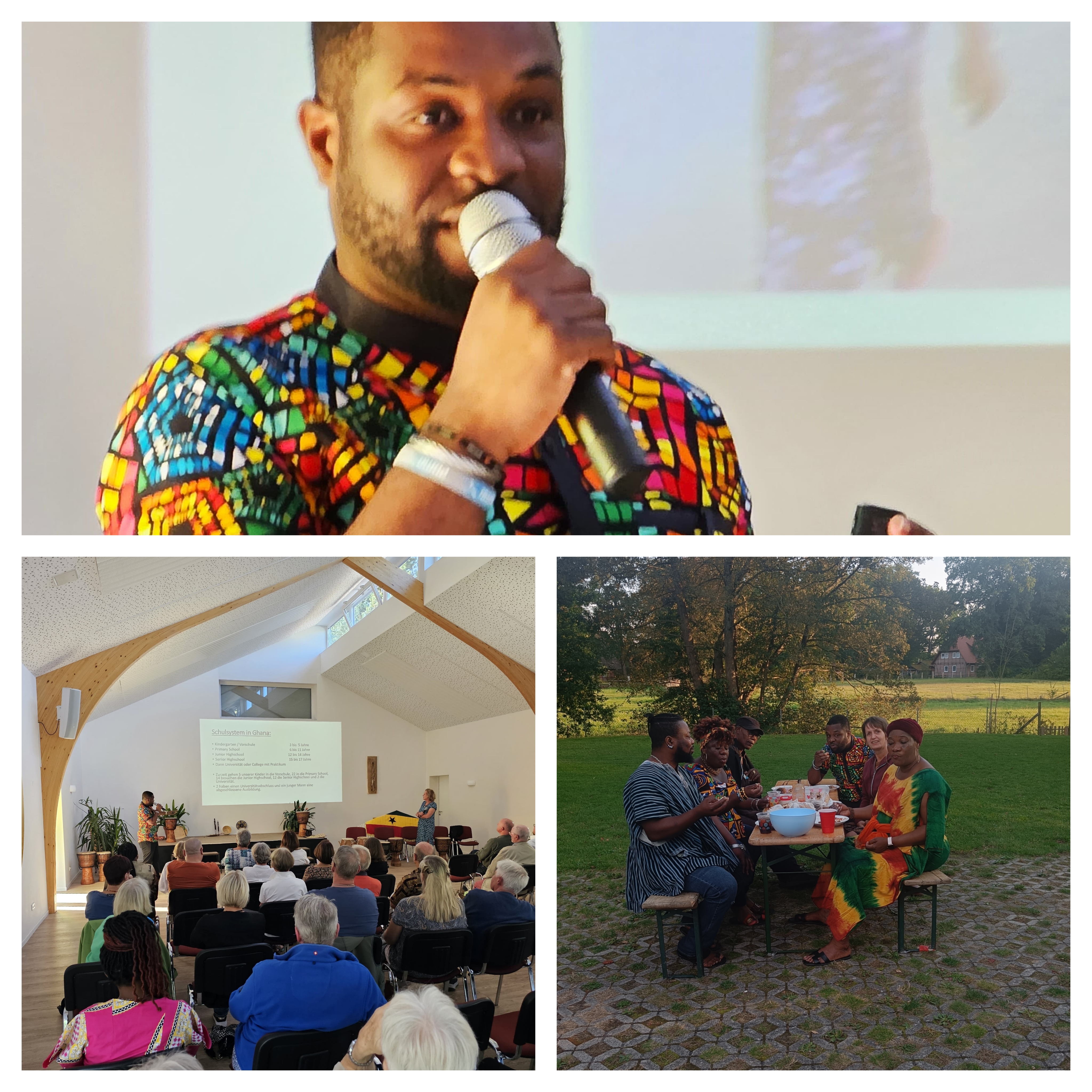 - Besonders intensiv und eindrucksvoll war der Abend des 15. August. Hier fand ein Patentreffen im Küsterhaus der Schule Bispingen statt. Paten und Interessenten saßen in einer sehr netten Runde zusammen, um Jacobs Erzählungen zu lauschen. Manchmal hatte man ein Lächeln im Gesicht, ab und an aber auch schluckten die Zuhörer bei den Berichten aus Ghana. Es wurde allen Zuhörern einmal wieder bewusst, wie privilegiert wir in unserem Land leben. Wie selbstverständlich eine schulische Ausbildung in Deutschland ist und dass die Verhältnisse in diesem afrikanischen Land so ganz anders und deutlich schwieriger sind.